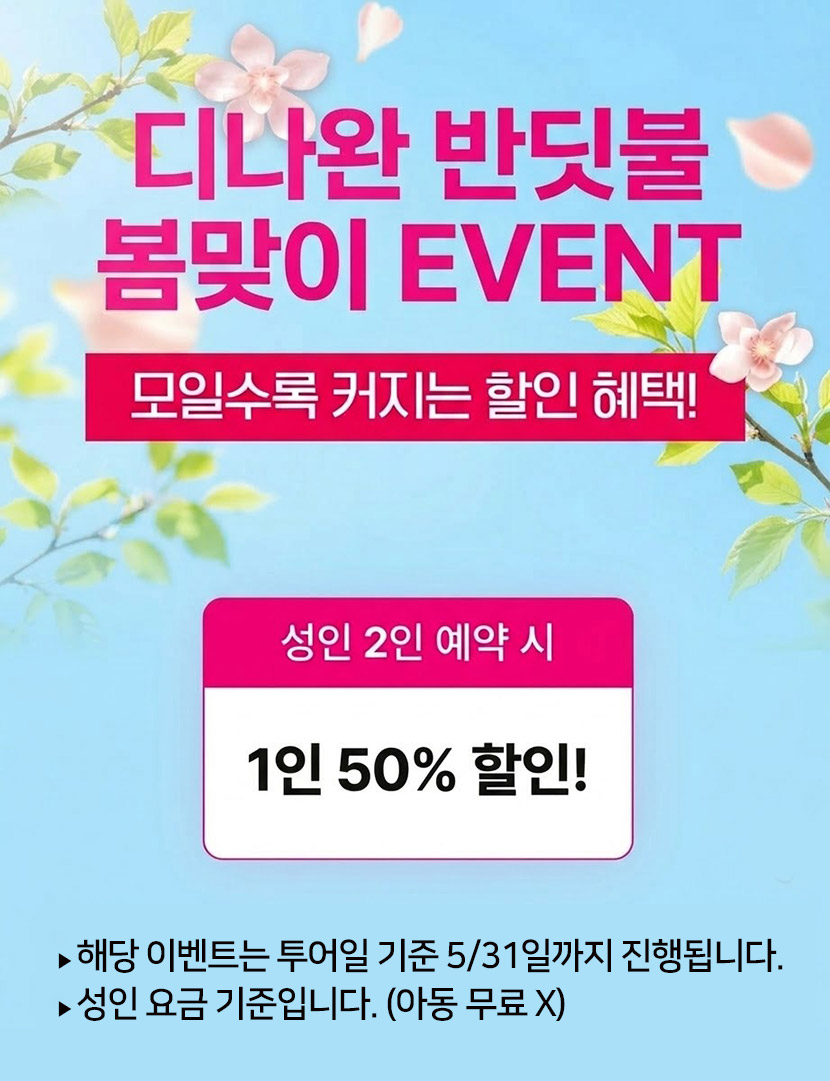 봄맞이 이벤트 (성인 2인 예약시, 1명 50% 할인!)