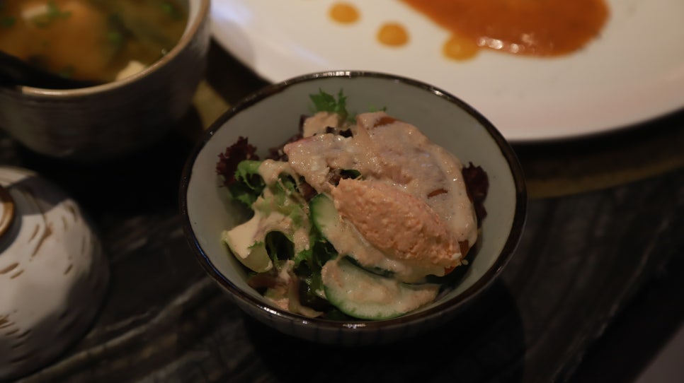모든 세트는 완두콩, 샐러드, 롤, 두부 에피타이저로 구성되어 있습니다.