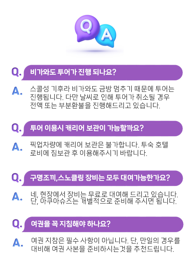 - 변경은 이용일기준 3일전까지 1회만 가능하며, 현지사정에 따라 변경이 불가할 수 있습니다.