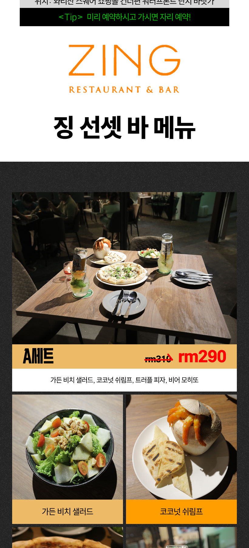 와~ 사진만 봐도 정말 맛있어 보입니다!! 뷰, 맛 뭐 하나 빠지지 않는 징레스토랑이죠!!