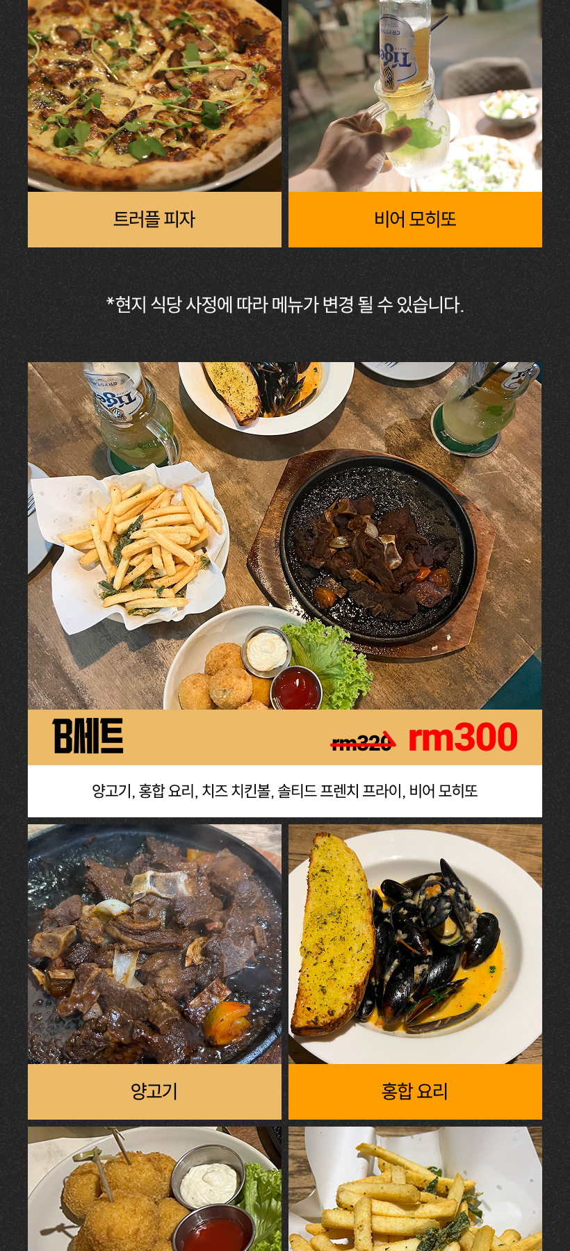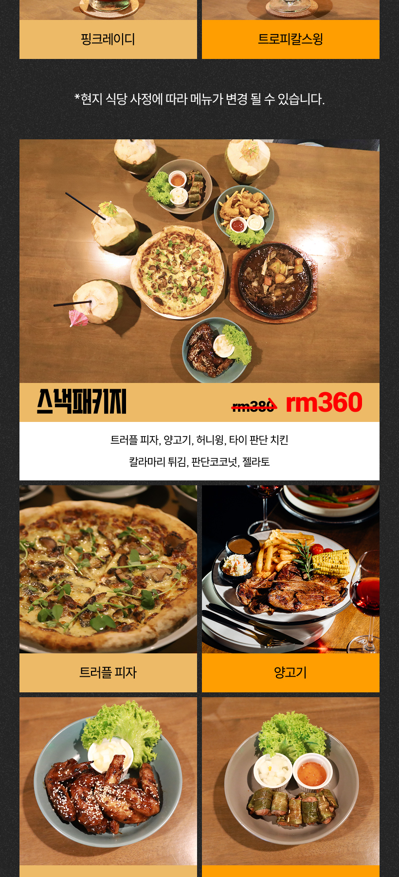 - 현지 사정에 따라 제공메뉴는 변경될 수 있습니다.