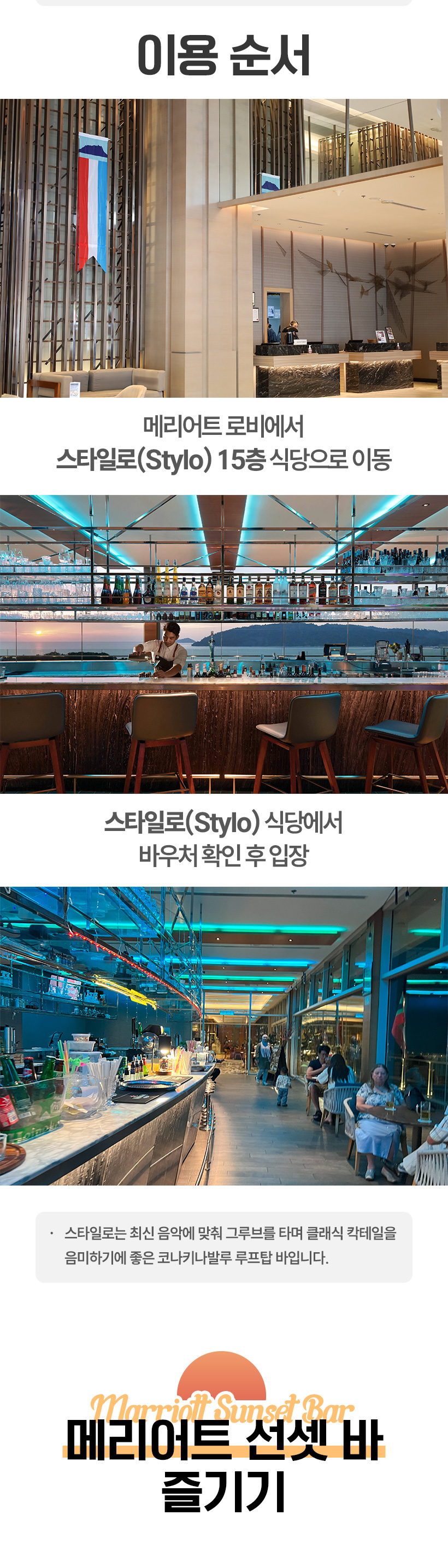 선셋을 꼭 닮은 칵테일 분위기 미쳤어요. 호텔 안에 있는 선셋바라 직원들 너무 친절하구 뷰도 좋구 햄버거 진짜 맛있어요!!