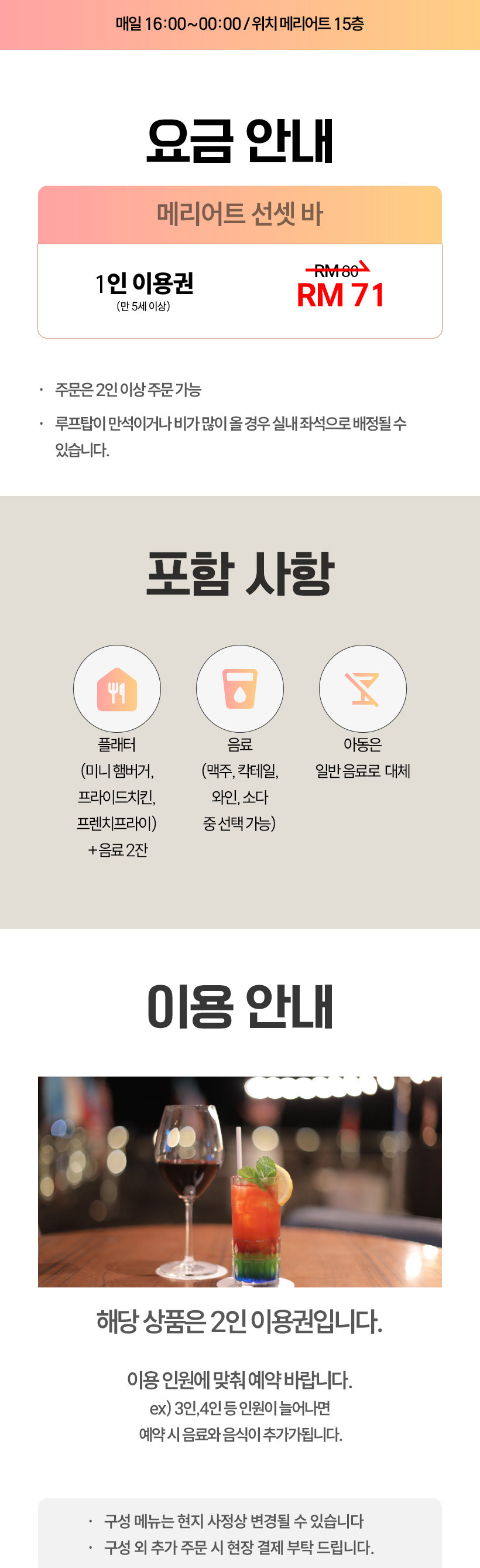 - 우천시 실내 좌석으로 배정될 수 있습니다. 이로인한 취소 및 환불은 불가합니다.