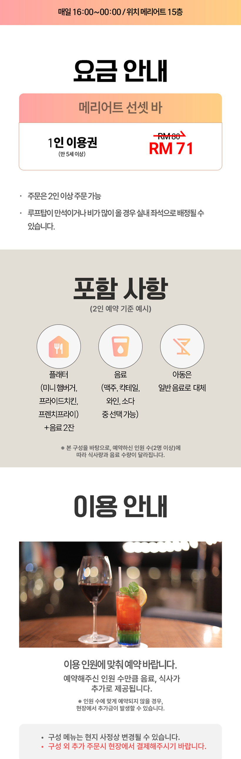 - 인원 미포함으로 발생한 현지비용에 대해서는 책임지지 않으며, 현장에서 결제 해주셔야 합니다.
