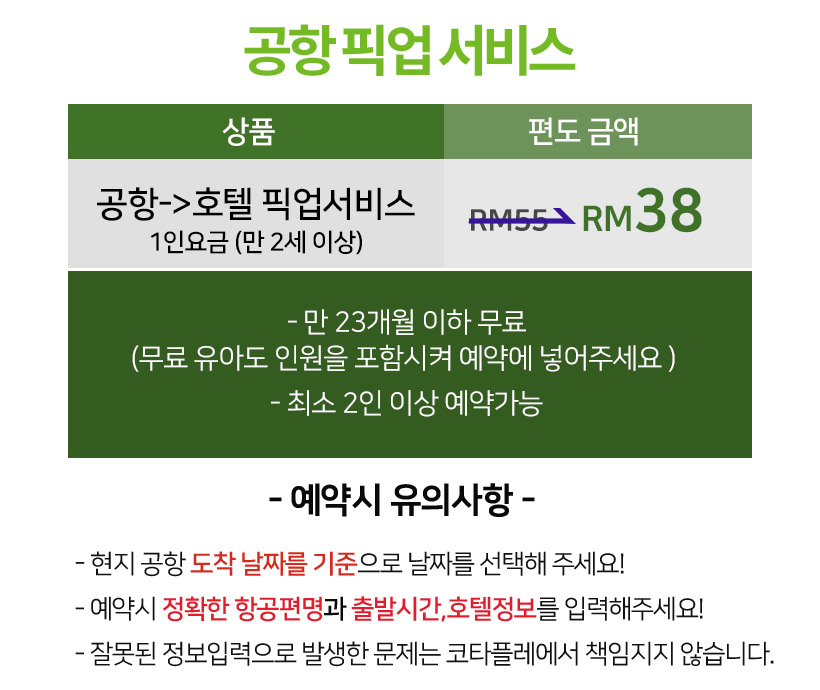- 한국에서 출발하는 비행기 편만 픽업서비스가 가능합니다.