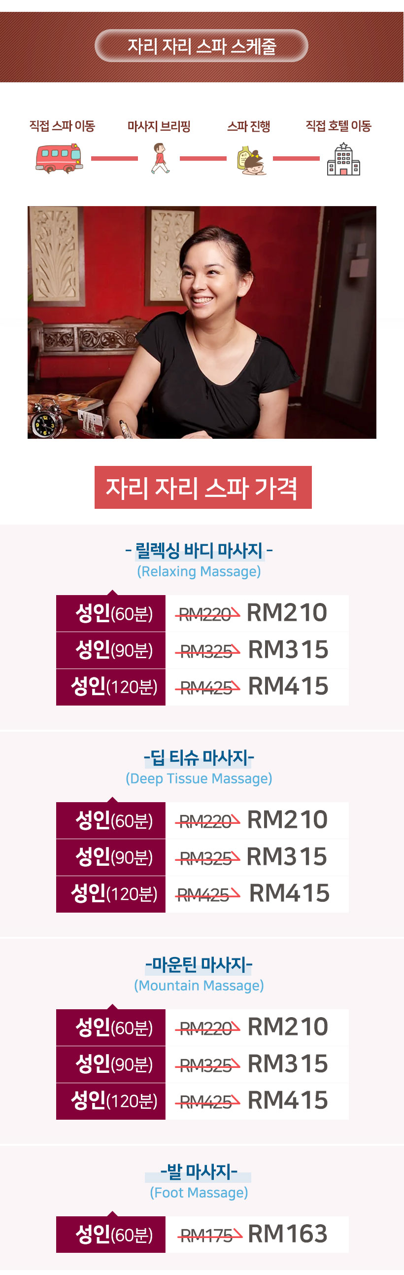 - 마사지 시간에 늦어도 종료 시간은 동일하오니 최소 15분전에는 도착해주세요!