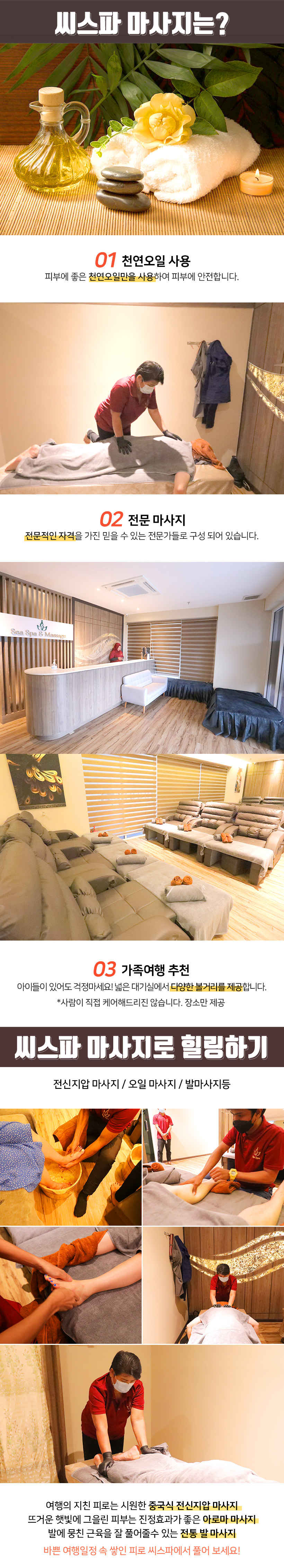 - 마사지 시간에 늦어도 종료시간은 동일하오니 최소 15분 전에는 도착해주세요!
