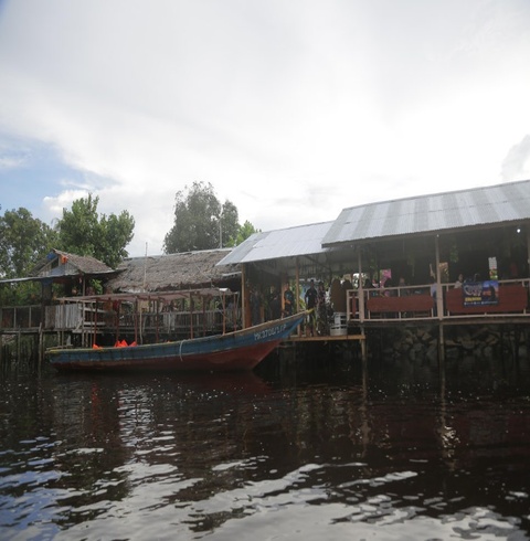 오후 시간에는 맹글로브 숲을 보트로 탐험합니다.