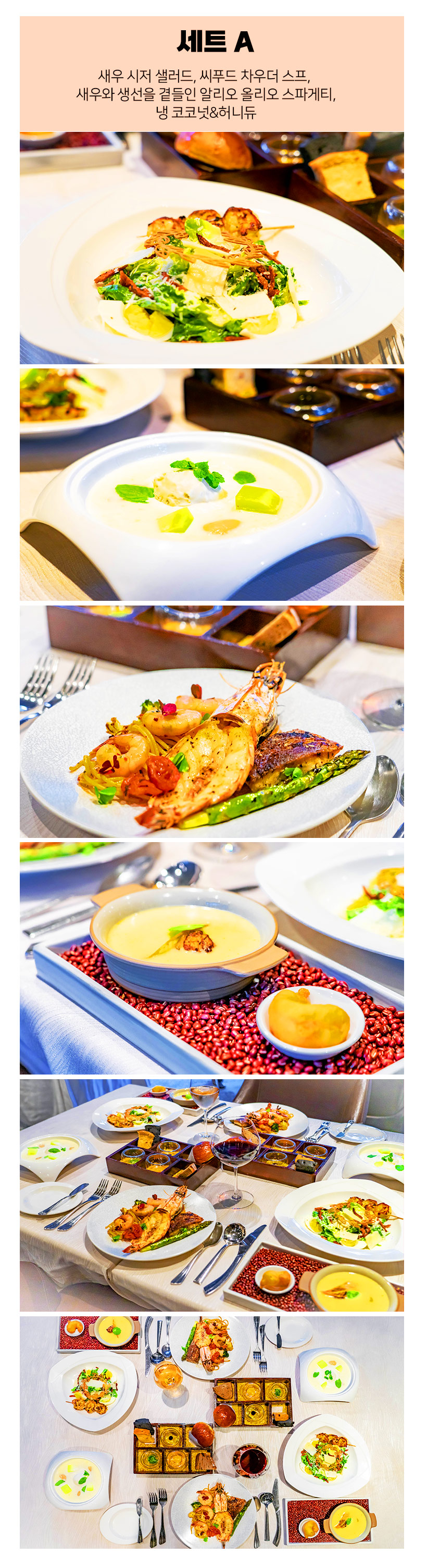 - 무료 음료는 와인, 샴페인, 주스 또는 소프트 드링크 중 택1