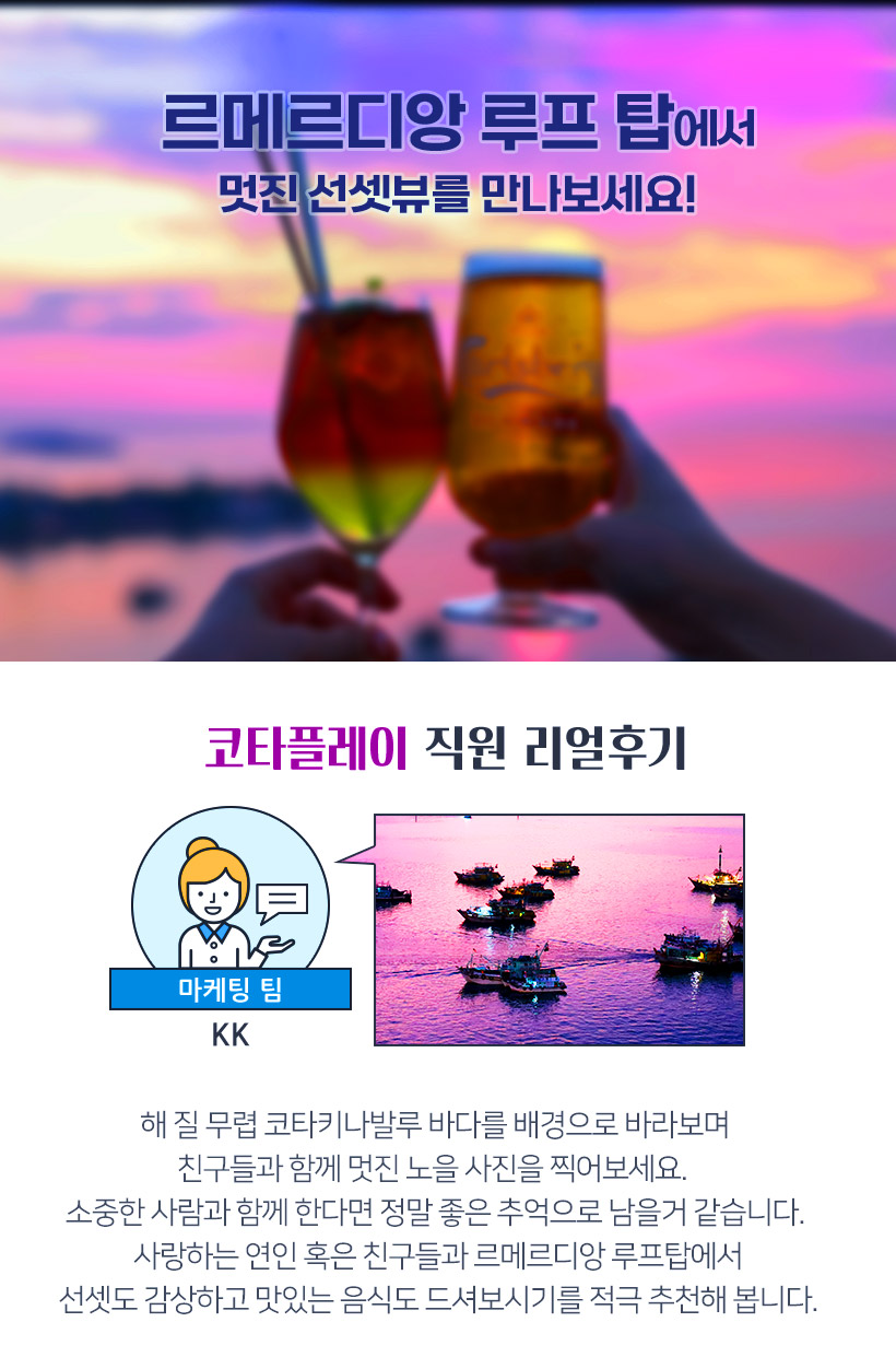 언제나 만족스러운 여행 되도록 노력하는 코타플레이 되겠습니다! 감사합니다.