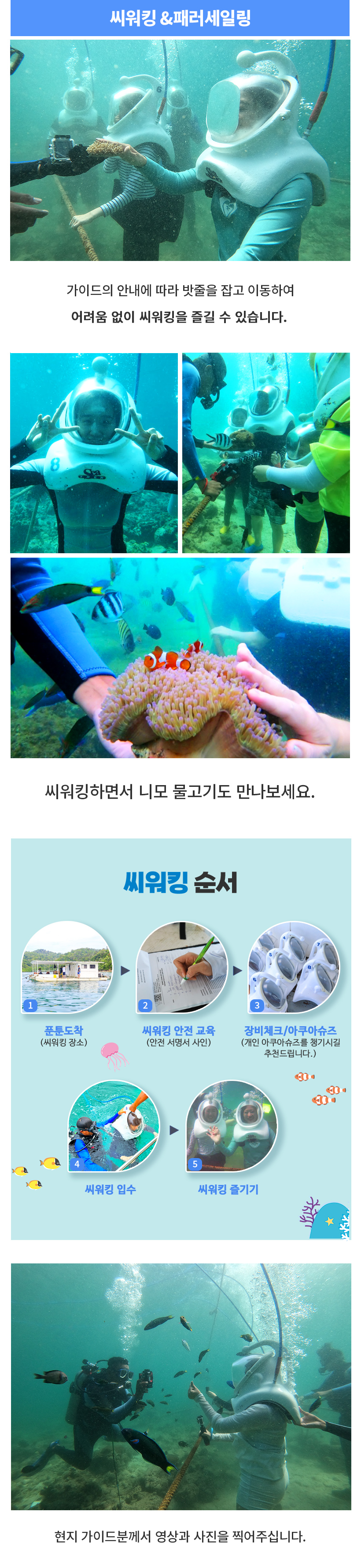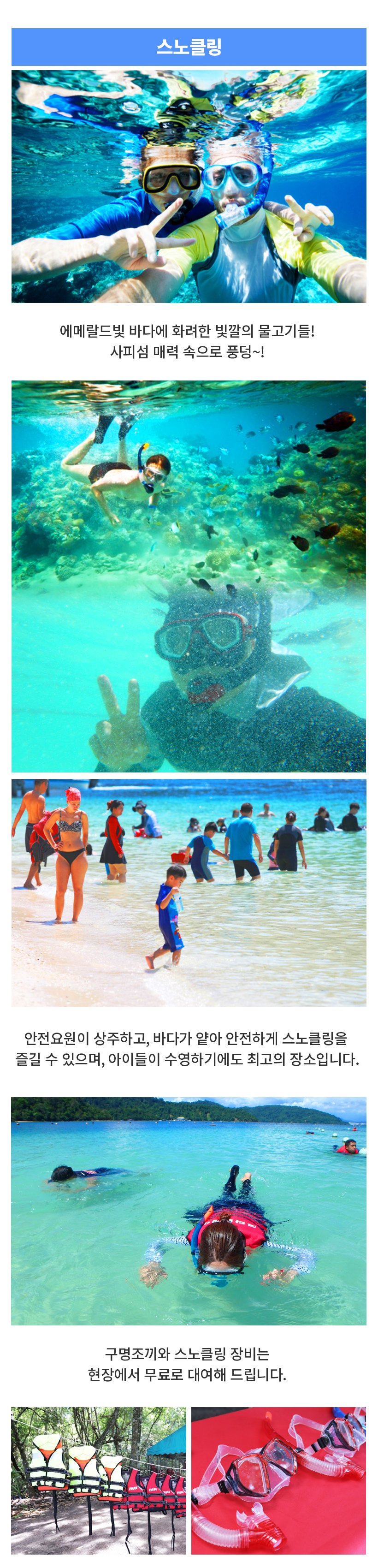 - 스노클링 체험시 날카로운 산호에 다치지 않도록 개인안전에 주의바랍니다.