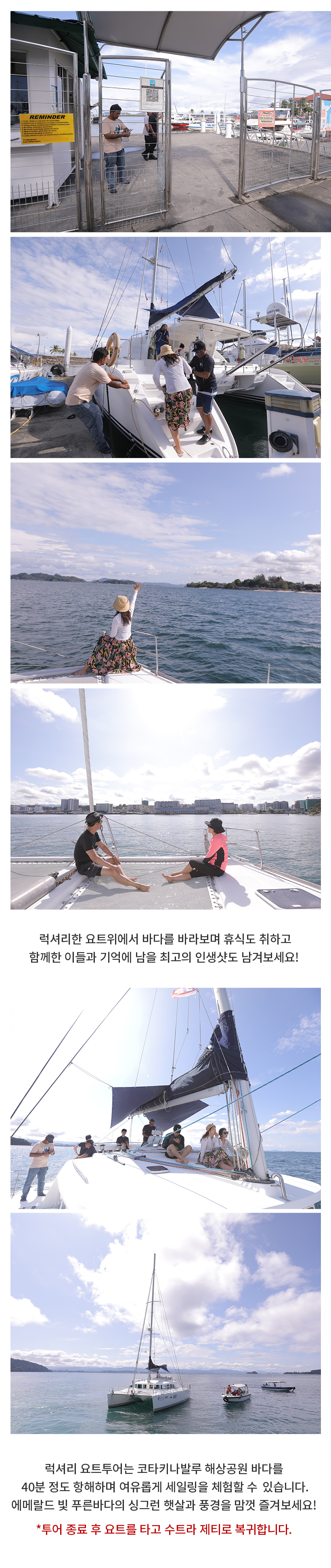- 요트 결항시 일반 보트를 대체될 수 있으며, 가야+사피 2섬투어 및 마린팩으로 상품이 전환될 수 있습니다.