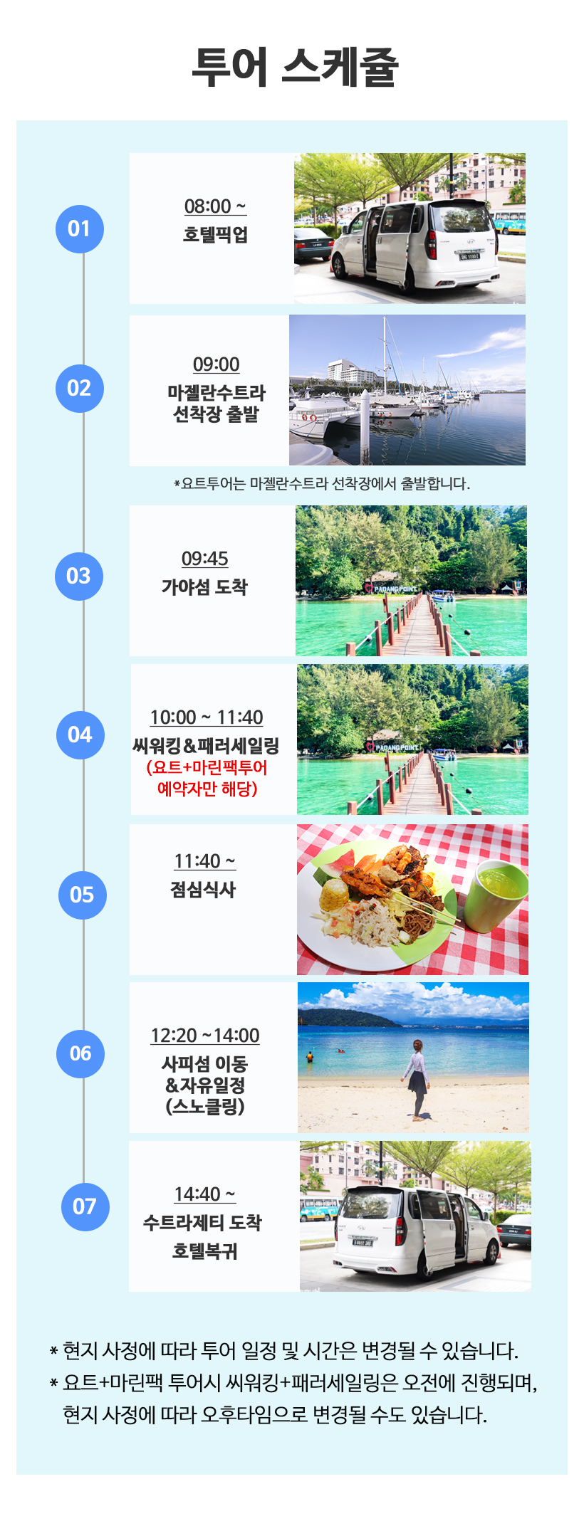 *요트 결항시 일반 보트를 대체될 수 있으며, 가야+사피 2섬투어 및 마린팩으로 상품이 전환될 수 있습니다.