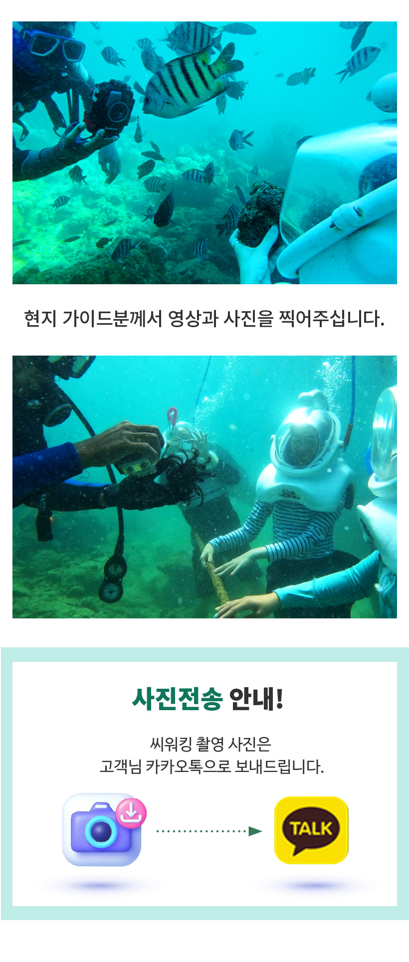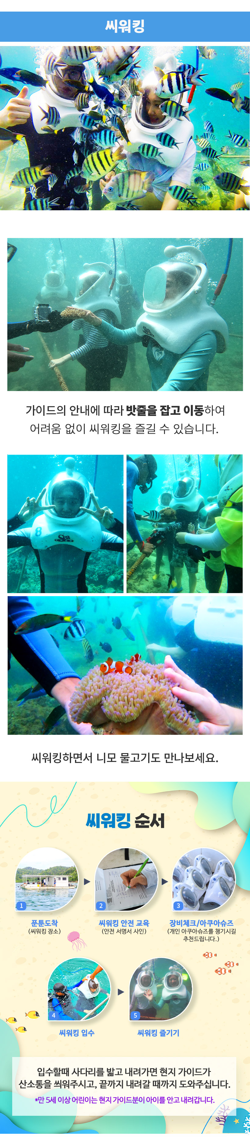 - 스노클링 체험시 날카로운 산호에 다치지 않도록 개인안전에 주의바랍니다.