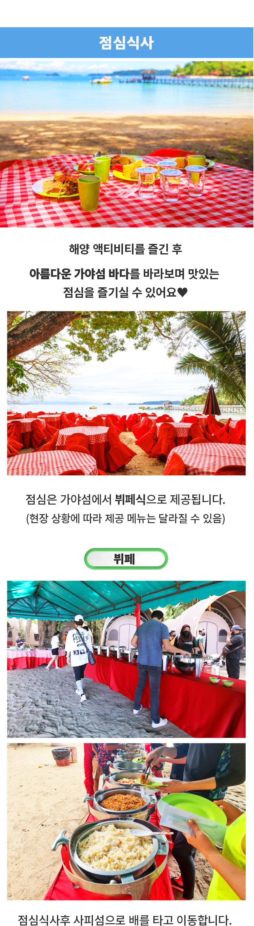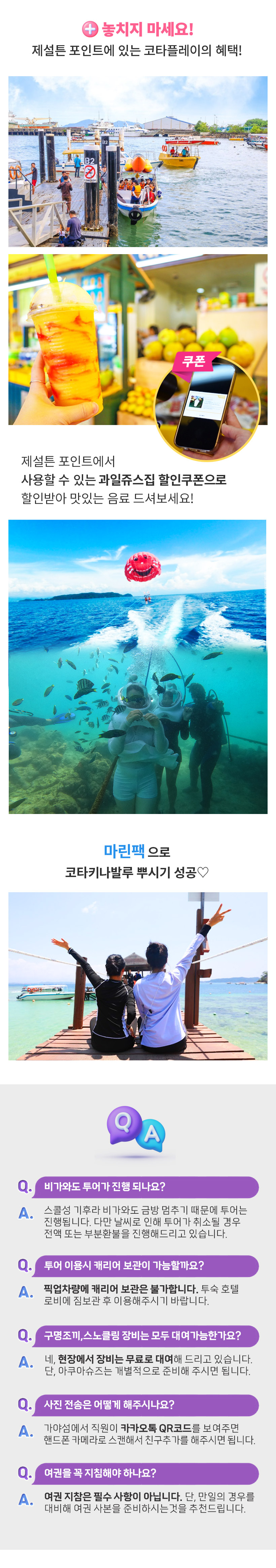 - 해양 액티비티는 안전문제로 가급적 사피섬에서만 즐기시길 추천합니다.