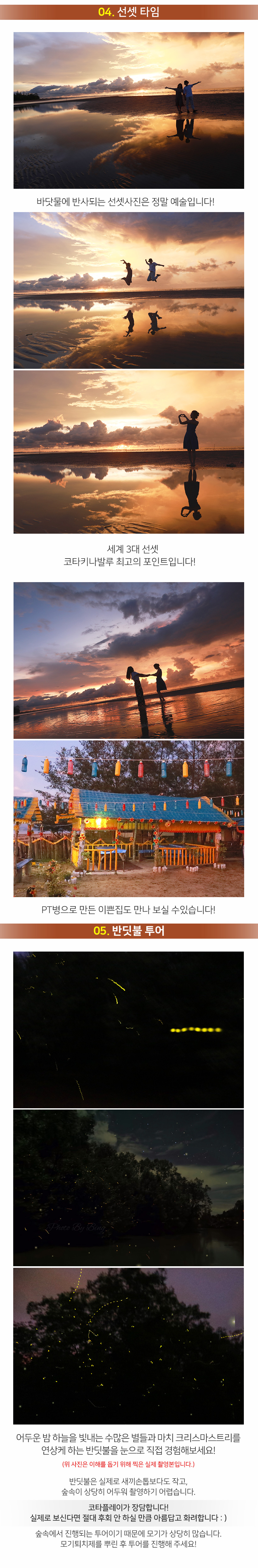 비치에서 인생사진 찍고 ,편하게 보트를 타고 다니며 자연에서 살고 있는 동물들을 보고 , 반딧불이도 별도 정말 많았습니다~