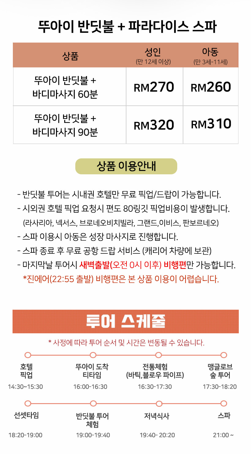 - 스파 종료 후 공항 또는 시내호텔 무료 드랍서비스