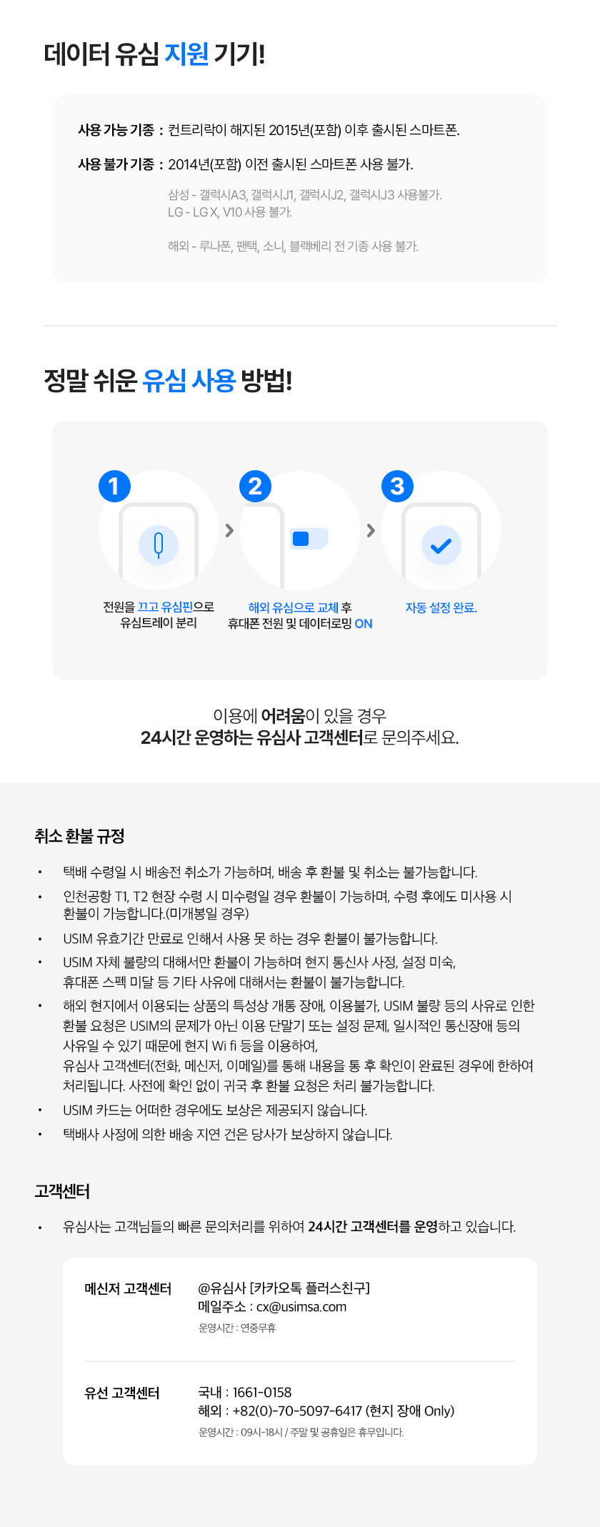 uSIM은 출발일 기준 최소 7일전 주문 해주셔야 원활하게 수령 가능합니다.