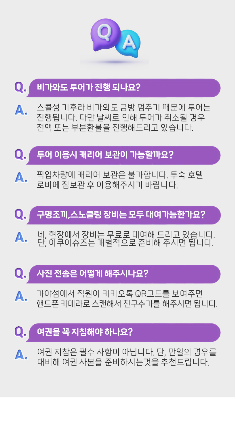 - 해양 액티비티는 안전문제로 가급적 사피섬에서만 즐기시길 추천합니다.