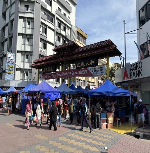 일몰 후에는 탄중아루 야시장에서 현지 음식을 맛볼 수 있습니다.