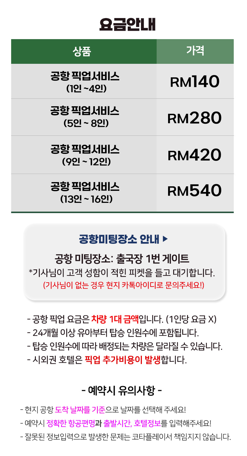 - 한국에서 출발하는 비행기 편만 픽업서비스가 가능합니다.